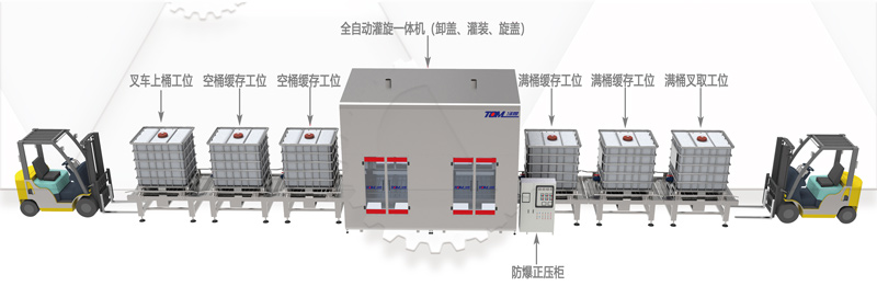 IBC噸桶、200L桶復合智能灌裝線(xiàn)案例